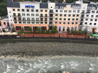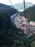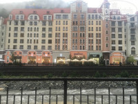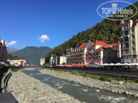 Территория Красной поляны – все красиво застроили, но вне зимнего сезона там скучно. Работают только магазины и немного подъемников. Вечером никаких развлечений нет совсем. Нашли один напротив отеля клуб – караоке, но обстановка там не совсем располагающая для веселья, мы были одни. На второй вечер поиски где бы развлечься совсем ничем не закончились – хотели поехать на такси в Горки-город, но выяснилось, что там тоже клубы закрыты летом. Остается только в темное время суток гулять вдоль реки до дороги и обратно (расстояние небольшое). Поэтому выбирая данный район для летнего отдыха, надо учитывать данные нюансы (дорога до моря, пляж, вечерние мероприятия и не бюджетное питание). Еще немного про питание – в первый день после неудачного захода в ресторан отеля, пошли в кафе напротив поесть пиццы: на улице шел ливень, девушка-официантка в мокрой куртке принесла нам сначала меню, потом напитки и потом пиццу, т.е. еду она тоже разносила в верхней грязной мокрой одежде. Вроде ерунда, но как-то неприятно.