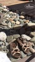 Организован бесплатный автобус до пляжа, но график его работы не совсем удобен (ниже в отзыве про это написано). Сам пляж – огороженное организованное пространство на берегу в районе олимпийских объектов – вид с моря на берег не впечатляет (застройка на пустыре). Лежаки стоят на огромных булыжниках и очень тесно, между лежаками почти до самой воды деревянные настилы, но от настила до воды дойти придется очень сложно - камни. Вход в море тоже очень сложен из-за камней. Почему не придумали какие-либо приспособления для удобного входа в воду, как это организовано на турецких курортах района Кемер (где тоже камни), непонятно. Море – чистое, но огороженное буйками пространство в 25 метрах от берега ! Это как в бассейне. В море народу очень много, хочется отплыть подальше и там спокойно вдоль берега поплавать, но не получится - спасатель на лодке принуждает вернуться в огороженное пространство, где полно народу, в том числе активно прыгающего с понтона. Это просто кошмар. Если хочешь спокойно плавать, надо уходить в сторону от организованного пляжа, и там всем все равно где ты плаваешь, только главное ноги не переломать по камням, пока будешь идти. Рядом с пляжем есть какие-то ларьки с едой, кабинка для переодевания (1 шт с очередью) , туалет. Дорога на автобусе до отеля около 1 часа. Вобщем, если каждый день ездить из отеля на пляж, то пляж расстроил.