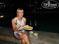Пляж свой,лежаки бесплатно,только занимать их нужно очень рано.Бассейн не посещали.были только на море. Обедали в кафе на против отеля *У ДЯДИ Вовы*.На ужин ездили в район ,около Дельфинов.Ресторан *Караван* (узбекская кухня).Можно пешком прогуляться. Ездили на военный пляж.Не понравился,просто были на нем 6 лет назад,это была на самом деле голубая лагуна.А сейчас море там грязное.Можно бесплатно у отеля покупаться.Отэль понравился.Рекомендую