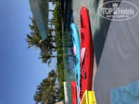 Территория очень хорошая, все ухоженное, зеленое, три бассейна, не большие водные горки. (Кстати бассейн не чистили, постоянно был песок на дне), есть спортзал. Возле бассейна можно купить мороженое и пиво.