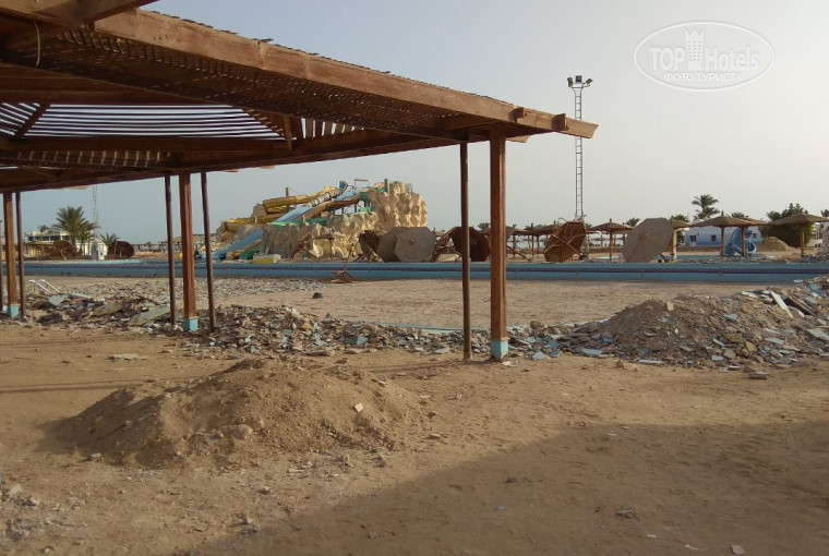 Большая часть территории (именно этого отеля, не всего комплекса Golden 5 из 7 отелей) явно законсервирована, проводятся строительные работы.