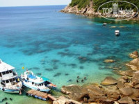 Единственная экскурсия, которую мы купили, это была поездка на острова Тао (Koh Tao) и Нанг Юан (Koh Nang Yuan). Стоимость 1550 БАТ на человека в местном турагентстве (в рублях примерно столько же), замечу, что у Марины эта же экскурсия стоила бы 2400 БАТ, на нас четверых экономия составила 3400 БАТ, т.е. больше 100 долларов!!! Состав экскурсантов интернациональный, поэтому гид, местный абориген, говорил на вполне понятном даже для плохо знающих этот язык людей простейшем английском, вот и все неудобство за сэкономленные 100 баксов. Поездка за 70 км на скоростном катере с тремя моторами по 225 лошадиных сил каждый заняла 1 час 20 минут. Детям и пожилым людям лучше принять таблетку от укачивания перед плаванием, так как реально были «мученики»…Острова, конечно, сказочные, море бирюзового цвета, кораллы и красивые рыбки присутствуют, правда не в таком количестве, как на Красном море, да и глубина где-то 4-5 метра в зоне плавания. Поэтому дайвингистам там делать нечего, маска-трубка –ласты –плавки - вот главное снаряжение для этой поездки…….