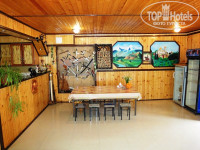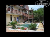 Во-первых далеко от моря-минут 25-30, хотя хозяин утверждал- 10-15 минут. Значительная разница. Дорога к морю очень неудобная-большая часть по краю оживленной трассы (пешеходных дорожек нет, а автомобили в Абхазии водят без соблюдения каких-либо правил😂). Двор гостевого дома чистый, уютный, много зелени (как и все дворы Абхазии👍). Во дворе растут инжир, хурма, мандарины и прочие прелести. Клетка с совенком, много добродушных собак. Бассейн небольшой, содержат в чистоте. Есть небольшая столовая, готовят для постояльцев за доп.плату. Мы один раз покушали и больше здесь не питались- все оооочень пересолено, не вкусно и достаточно дорого. Есть оборудованный навес для самостоятельного приготовления пищи. В большей степени мы из-за этого и выбрали данный гостевой дом ( необходим был особый рацион по состоянию здоровья ребенка). Но о,ужас!!! Двухкомфортная электрическая плита бьется током, вода на ней закипает в течении почти часа. Посуды практически нет- 3 кастрюльки и две сковороды, десяток тарелок и ложек-вилок. Людей много, многие с маленькими детьми- к плите очередь и скандалы. Обратилась к хозяину по поводу посуды- с настоящим кавказским радушием пообещал все решить, еще и поругал, что сразу к нему не обратилась. Но так ничего и не изменилось. Постояльцы с меня посмеялись- все обращались с данным вопросом и всем обещал, но ничего не сделал. Все сделано для продвижения собственной точки общепита. Пришлось купить посуду для приготовления самим🤣🤣🤣. Номер маленький и ооочень сырой, слышимость СУПЕР!!! В душевой вытяжка практически не работает, все испарения остаются в номере. Вода полностью не стекает, в душевой постоянно лужа. Перегорела лампочка, два дня просили поменять-обещают, но не делают. Купили сами и сами же поменяли. Кондиционер холодит хорошо, но гудит как трактор. При включенном спать невозможно. Мебеьь, техника (телевизор, холодиььник), белье все допотопных времен, старое и замызганное.
