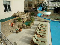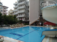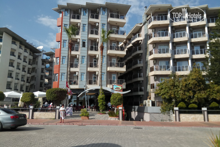 Сам отель находится на отдалении от центра города - пешком до пристани и Красной башни (либо начала пляжа Клеопатры) около 40 минут хотьбы. Можно доехать автобусами №1 и №101 за три турецких лиры. Но мы любим ходить, поэтому общественным транспортом пользовались всего пару раз. Отель состоит из трех зданий - корпуса 1 и 2 расположены ближе к дороге и корпус 3 в глуби. Есть два бассейна, маленькая зона для детей (см.фото), несколько баров, основной ресторан, кофейня, пиццерия, ресторан аля-карт, хамам, беседки с качелями, теннисный стол и биллиард.