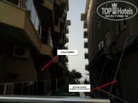 Теперь самое главное, что НЕ ПОНРАВИЛОСЬ (и из-за чего я снизил оценку) - это местоположение самого номера в корпусе отеля. Номер 2110. Расположен на первом этаже. Окно (и балкончик)выходит на стену корпуса №1, на проход к морю и дверь, ведущую к ресепшену (см.фото). То есть - все, кто идут мимо, могут наблюдать происходящее в данном номере. Чтоб исключить любопытные взоры - нужно постоянно закрывать шторы. Так же свет перекрывает здание корпуса №1. Лампы в номере тусклые, поэтому в номере постоянный полумрак. Такая же ситуация и в соседних номерах - 2109 и 2111. Избегайте селится в них. Кстати отель был заполнен не полностью, и почему нас поселили именно в эти номера, не совсем понятно. Вообще, корпус №2, на мой личный взгляд, самый неудачный.