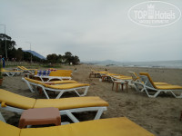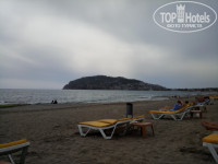 Пляж стандартный - бар, лежаки, зонтики, душ, туалет. Находится через дорогу от отеля, то есть фактически первая линия. Конечно он не сравнится с пляжем Клеопатры с золотистым песком, зато рядом. С погодой нам не повезло - было прохладно. Купались единицы, да и назвать это купанием, можно с большой натяжкой - зашли, окунулись, вышли. Мы ни разу не решились. В баре на пляже только пиво, вино и соки-колы. Коктейлей и крепких напитков нет. Сам пляж песчаный (песок серый), но ближе к линии воды - камни.