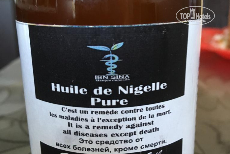 Летали с "Анекс туром". Отельный гид Анна помогала во всем. Одно обидно - по приглашению "Анекс тура" ездили в косметический магазин, который позиционируется, как только что открывшийся, с большими скидками и т. п. Скидки почти не дали, но не об этом речь. Масло черного тмина, купленное в магазине для мамы, оказалось подделкой - по оргонолептическим свойствам это, скорее всего, оливковое масло. Оно, конечно неплохо, но отдать большие деньги не за лекарство, а за кулинарный продукт обидно. Фотографии упаковки прилагаю.