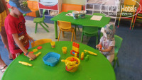 Питание отличное, всего хватало и было вкусно! Только каши по утрам уж очень сладкие, сахар хрустит на зубах, но оладки с шоколадом вкуснота! Анимация ненавязчивая, днем детки могли играть на детской площадке или играть в игровой комнате, за отдельную плату можно было разукрасить сумку или майку. Днем можно было играть в водное поло, бильярд, дартс.