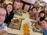 Местная еда была в изобилии: много основных блюд и салатов из кабачков и баклажан, много местных салатов, много пирожных, каждый день были новые фрукты. И при всем этом алкоголь в отеле был так себе: средненькое пиво, невкусное вино. Но вопреки страшным историям, которые мы слышали даже от отдыхающих в отеле, никто из нас не отравился, все были сытые и довольные.