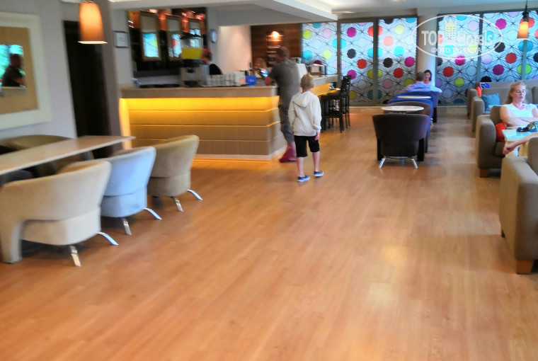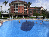 Отдыхала в отеле с мужем, две недели. Заехали в отель рано утром, сразу же надели браслеты и заселили в номер 2412, расположенный во втором корпусе отеля, на четвертом этаже (фактически 5 этаж, т.к. есть нулевой). Проблем подниматься на этаж нет, так как имеется лифт. Территория отеля маленькая, но очень удобно продумана. Все находится вокруг одного большого бассейна. В отеле один ресторан, два бара и кондитерская. В обед можно перекусить в баре около бассейна бургерами, картофелем фри и т.п. С 12 до 17 в кондитерской можно пить чай, кофе с выпечкой и есть вкусное мороженное. Питание в данном отеле достойное, во время нашего отдыха практически каждый день была клубника, каждый день арбуз, дыня, яблоки, груши. Раз в неделю устраивают турецкий ужин с местной кухней и рыбный ужин с угощениями раками, тунцом, мидиями и т.п. Хочется отметить как плюс, наличие диетического стола, где предложены отварные картофель, рис, макароны, курица, которые приготовлены без добавления приправ. Большой выбор мяса, говядина в разном виде, курица и рыба, много зелени, и различных закусок. В СПА центе хамам, сауна, соляная комната бесплатно, за отдельную плату банщики :) могут натереть вас пеной под турецкие песни:) и сделать массаж. Теперь про пляж, в настоящее время на пляже открыт понтон, на котором есть бар, вечером на понтоне устраивают дискотеку. Сам пляж небольшой, лежаки старые. вход пологий, специальная обувь не требуется. Расположение отеля очень удобное, в центре Конаклы. Выйдя из отеля справа находится торговый центр, на самом деле там продают тот же товар, что и на рынке. А через дорогу находится ТЦ "тайм центр" там представлены различные магазины с фиксированной центой, есть известные фирмы, нам понравился магазин "Tony montana" большой выбор мужской и женской одежды, часть товара продается по акциям за приятную цену. На противоположной стороне от отеля, через дорогу находятся различные магазинчики с одеждой и сувенирами. Если что то понадобиться купить, лучше пойти в местный супермаркет, где цены намного ниже чем в магазинах для туристов. Я забыла взять с собой крем от загара, так вот в супермаркете "Hasbul" купила крем за 150 рублей с высокой степенью защиты, по дороге заходили в аптеку и магазины для туристов, так вот там крем обошелся бы мне в 1000 рублей. В "Hasbul" купили восточные сладости и оливковое масло с собой, магазин очень недорогой, модно рассчитаться в любой валюте и картой. С отельным гидом мы не встречались, так как обман начался уже в автобусе при встрече из аэропорта, стали пугать тем, что если не придем на следующий день на собрание к гиду и не отдадим ему ваучер нас не зарегистрируют в жандармерии и не зарегистрируют на обратный рейс. Такое впечатление, что мы дебилы и нам можно вещать на уши, что угодно. На самом деле суть собрания состоит в том, чтобы продать туристам в тридорого экскурсии, которые рядом с отелем в агентстве стоят намного дешевле. Мы с мужем сами ездили в Аланию, остановка около отеля, билет 4 лиры, дорога 15-20 минут. В Алании на фуникулере поднимались на гору, там очень красивая крепость, около 300 метров над уровнем моря, великолепный вид на город и порт. Фуникулер стоит 20 лир. В принципе мы довольны отдыхом, но для нас, двоих взрослых людей территория отеля была слишком мала, что наверно удобно для отдыха с детьми, так как все рядом, далеко ходить не 