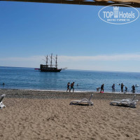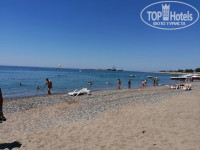 Пляж. Чисто, песок, галька при входе в воду, глубина почти сразу, вода чистейшая, прозрачная, можно плавать с маской, видно рыбок. Рядом есть островок, туда приходят корабли, красиво проплывают мимо, можно любоваться, очень приятный вид.