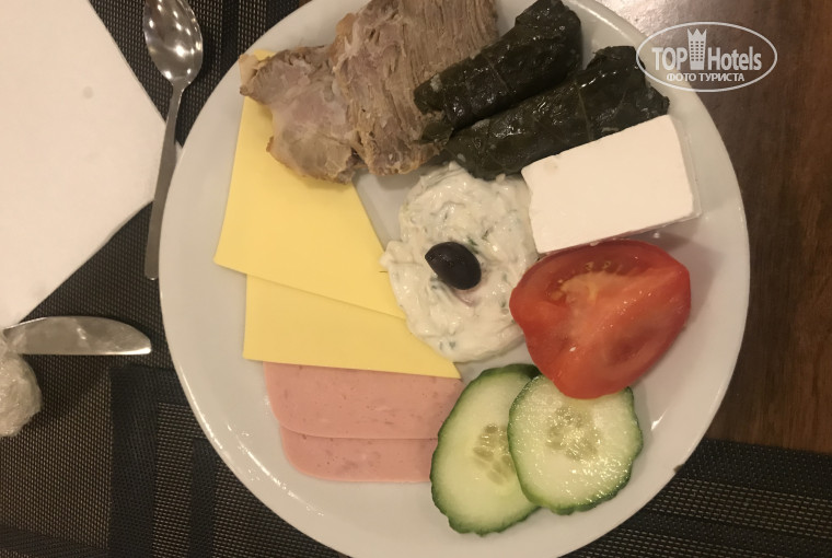Ps: на фото поздний ужин, который заказали заранее - нам вынесли: 2 куска сыра, 2 ветчины, 2 долмы, 2 непонятных куска мяса, 2 куска огурца и помидор.... и все ледяное!!!! То есть это было накрыто пленкой и ждало в холодильнике.