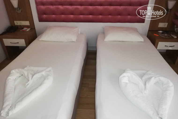 Отдыхала в отеле с 16.05.2019 по 27.05.2019 вместе с мамой пенсионного возраста. Привезли нас в отель после 22:00, на ресепшен сразу одели браслеты и выдали 2 ланч-бокса (масло, джем, хлеб, половина огурца, помидор, напиток), русскоговорящий парень (извиняюсь, не запомнила имя) объяснил кратко где что находится (ресторан, бар, бассейн) и отправил нас в номер. Лифт новенький, работал исправно, но пользовались мы им редко, т.к. номер был на 3 этаже (309) ходили по лестнице. Сначала расстроилась, что балкон выходит не в переулок, а на соседний отель с задней стороны, но как оказалось зря, не было сильного солнца и духоты в номере. Между другими отелями немного было видно море))) теперь поговорим о плюсах: