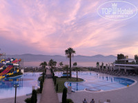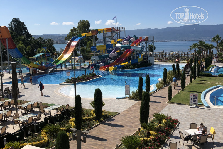 Здравствуйте! Вчера прилетели с отдыха. Расскажу своё впечатление об отеле. -заселение. В отеле мы были в 9:30. На ресепшене сказали подождать до 14:00, если появятся свободные номера - заселят раньше. Так как мы периодически подходили и спрашивали о номерах в 11 нас уже заселили. Если просто сидеть и ждать такого не будет (когда мы не смогли подключить интернет в 14:30 пришли на ресепшен - увидели тех, кто приехал вместе с нами, по-прежнему ждущих номера). - номер. Он у нас был шикарный! Прямой вид на море, которое можно видеть лёжа в кровати) 2 шкафа для одежды, куда отлично вместились и чемоданы и все наши вещи (вешалок достаточно). Большая ванная комната. Номер в принципе достаточно просторный. То, что было указано в описании номера - всё было. - еда. Фрукты есть практически всегда (арбуз, яблоки, груши, апельсины). Огорчило то, что так за 7 дней мы ни разу не увидели дыню, черешню, клубнику. Хотя сейчас сезон и в предыдущих отелях, в которых мы отдыхали они всегда были, пусть не на каждый завтрак/обед/ужин, но тем не менее. Этот отель заявлен, как отель с концепцией питания ультра. Предполагаю , что в год открытия так и было, а сейчас он явно не дотягивает. В целом питание в основном ресторане достаточно однообразное. На обед мы почти не ходили, так как вкусно перекусить можно было и у бассейна (в баре вкусные пиде со шпинатом, салаты; рядом бабушка печёт лепешки с различными начинками; готовят картофель запечённый в печке с разными начинками+ фрукты, мороженое, турецкие бублики и т.д. Ещё в отеле есть кондитерская, где после 14:00 пекут вафли - советую попробовать) Рестораны а-ля карте. Мы были только в одном так как приходить записываться нужно строго за день до заказанного ужина и желательно в 14:00 часа, так как потом мест может и не быть) Мы ходили в турецкий ресторан Anadoly - ужин нам понравился, вот только в меню перевода на русский язык нет, пришлось воспользоваться фотопереводом. - море. Самый большой минус этого отеля лично для меня) уж очень мелко! Долго идти, чтобы поплавать. Пирса нет. - бассейны и горки отличные! - анимация. Никто не пристает, очень ненавязчивая. Вечерняя анимация слабая. Шоу средние. Ведущий на русском не говорит.