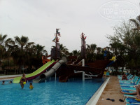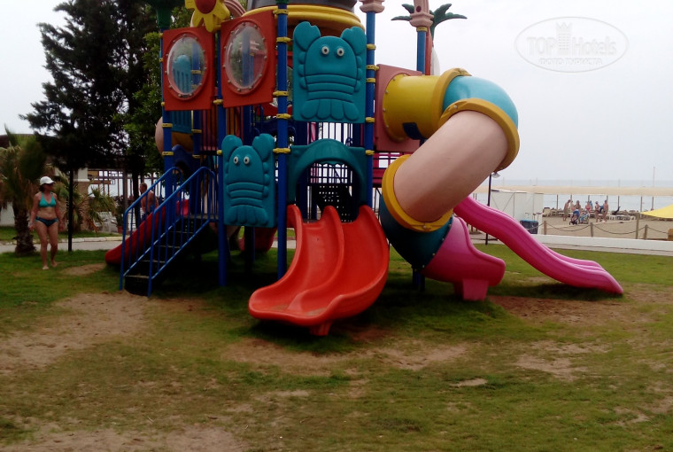 Мое мнение для детей все придумано отлично! Новая детская большая площадка с горками, качели, карусель, пиратский бассейн с горками, новая детская комната и лазалками и игрушки. Все супер, мой ребенок отрывался, всегда просился в детский мир) он так назвал все свои развлечения на площадке. В детской комнате новые игрушки, причем хорошей фирмы, фишер прайс и прочее, но детей много и не все аккуратно играют, не знаю насколько хватит игрушек. Сам лабиринт-лазалка интересный, три этажа, шарики, горка. Детские аниматоры занимаются с детьми творчеством, аква-гримм есть, есть еще там комната для мультиков. Но в почете у детей конечно больше пиратский корабль, у многих водные пистолетики и там периодически веселые водные перестрелки устраивались, причем с родителями вместе) Мы купили водные пистолеты в магазине при отеле, один поломался на второй день, поменяли без проблем. Вечером мини-диско в амфитеатре. Также есть платно машинки на аккумуляторах, батут. В детской комнате для деток есть сок из коробки и водичка. В баре и кафе для ребенка брали сок , просили именно из коробки, а не из автоматов.