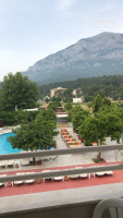 Отель нам понравился, только своим прекрасным и чистым морем. И видом из номера на горы) уборка номера была каждый день, но она заключалось только в заправке кровати и день через день меняли полотенца. Пыль на зеркале в номере лежала толстым слоем и не вытерлась видимо с прошлого летнего сезона. Сейф в номере платный 10 дней-20$. Вай фай тоже платный и ловит плохо. Симки дорогие.Питание в отеле средней поршивости . Голодным не останешься, но особо выбирать нечего! Из фруктов в отеле только яблоки и апельсины! Всегда большие очереди за мясом, блинчиками ,мороженным .Алкоголь местный на вкус так себе, лучше брать с собой с дюти фри))) анимация для взрослых отсутствует практически.