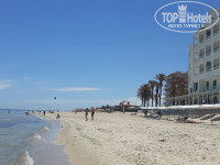 Так как отзывов по этому отелю нет, решил оставить свое мнение. Отель не 3 а 2 звезды. Это подтверждается тем, что при заезде берется курортный сбор как за 2-звездочный отель (2 динара в сутки, но не более чем за 7 суток). Отель находится в центре города Сусс, точно посередине между портом и Мединой (Старым городом). Самый главный и основной плюс отеля - это его местоположение относительно моря. Отель находится не просто на 1-й линии, а я бы даже сказал на нулевой. От стены отеля до кромки моря не более десяти метров. Пляж прекрасен - белый кварцевый песочек, мягкий пологий вход в море. Пляж регулярно чистится. Лежаки и матрасы за доп. плату 3 динара. Зонтики бесплатно. Отель городской, больше похож на наши российские городские гостиницы, абсолютно без территории. Нет соответственно и бассейна для любителей поплавать в хлорированной водичке. Питание в отеле либо завтраки, либо полупансион (завтрак+ужин). Может только во время моего пребывания, т.к. было очень мало отдыхающих, а может и постоянно ассортимент питания очень ограничен. на завтрак "шведский стол" отсутствует - завтрак вам подает официант (салат, отварное яйцо, мини-багет, 2 круассана, масло, джем, химический сок и чашечка неплохого кофе). На ужин присутствуют элементы шведского стола в виде 4-5 салатов, 1 вида супа (как правило суп-пюре), арбузов, горячее приносит официант (надо признать порции большие и чаще всего даже вкусные) - были спагетти с соусом болоньезе, рис с говядиной в соусе, стейк из тунца с картофелем, что-то еще, уже не помню. Напитки на ужине за доп. плату - 3 динара. Номера в хорошем состоянии, белье чистое, полотенца по 3 штуки на человека, при заезде был 1 кусочек мыла и 2 одноразовых бутылочки с гелем и шампунем, больше не пополнялись. В номере есть современный кондиционер и ЖК-телевизор с 3 российскими каналами(Россия, Россия-24 и какой то мутный канал с экстрасенсами). Пульты от кондиционера и ТВ выдают под залог 20 динар. Анимация отсутствует абсолютно. Wi-fi ловится отлично на 1 этаже и на всей территории пляжа, в номерах отсутствует. Рядом с отелем много частных магазинчиков и кафешек (которые в связи с рамаданом увы не работали). в пределах 5-7 минут ходьбы есть большой магазин с фиксированными ценами, типа нашего Магнита, Пятерочки с продуктами и хоз.товарами. Курс Динара к доллару - 2,9 динар за доллар, курс к рублю 22-23 рубля за динар. Проще всего ехать с картой (Виза, Мастеркард), в отеле и в магазинах с фиксированными ценами можно рассчитываться картами, если нужны динары, можно легко снять их в банкоматах, которых достаточно много - ближайший в соседнем отеле. Это выгодней, чем платить комиссию при обмене рублей на доллары, а затем долларов на динары. Обменять наличные рубли на динары очень затруднительно, поэтому нужно или иметь карту или наличные доллары, евро. Из покупок на мой взгляд нужно взять тунисский кофе марки "Бондин" в зернах или молотый - 6,5 динар (150 руб.) за 500 грамм. пачку, Оливковое масло - 15 динар(330-350 руб.) за 0,7 литра, халва, лукум.