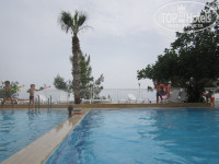 2. Пляж: пляж делят на 2 отеля: левее пирса камни (почти никого нет) правее пирса до "квадратно камня" дно каменистое но сносное!, дальше песочек! последние 2 дня нашего отдыха был большой наплыв людей, утром можно лежак и не достать!. лежаки есть с матрасами и без, можно лежать и правее и левее пирса ЭТО ВСЁ ОБЩЕЕ на 2 отеля!
