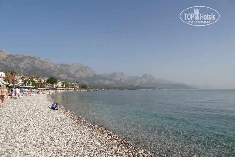 ПЛЯЖ. В начале сезона лежаков было всем достаточно. Вода была 16-18ºС, но мы купались. Если постоять в воде, то привыкаешь. Вода очень чистая, но пляж галечный, и босиком сложно передвигаться, лучше взять акватапки. У нас их не было, мы ходили и плавали в шлёпках. Полотенце для пляжа платные, но можно на улице купить за 1$ в клеточку (кто раньше бывал в Турции знает, о чём я говорю), и спокойно ими пользоваться.