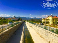Параллельно дороге идёт речка, причём эта речка идёт и по всему посёлку, и вся грязь впадает в Средиземное море. Хотя везде пишут, что отель расположен на Эгейском море, но нет, все местные скажут, что это Средиземное море.
