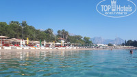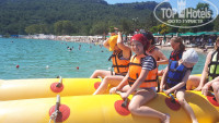 Отдыхали с ребенком. Сервис отличный, вежливый и внимательный персонал, разнообразная еда(рыба, говядина, индейка, курица, печень, салаты, овощи и фрукты, сладости). Из бесплатных напитков- соки(не очень), кола, вино, пиво,водка, джин. Бар бесплатный до 22.00. Отель все таки 4*. и для 4 свое полностью отрабатывает. Уютные номера, красивая маленькая территория. Из минусов отсутствие собственного пляжа, толпа на трансфер до пляжа и платный вай фай (1 доллар). Остальное все на высшем уровне!На пляж можно добираться пешком 10-15 минут. Есть городской платный галечный и песчаный. Везде платные лежаки 2-3 доллара. Один раз в неделю турецкая ночь, редко дискотеки. Анимации нет.