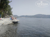 На пляже купались всего 2 раза (помним же, что холодина еще). Чаще прогуливались или приходили вечером просто посидеть около моря. Днем лежаки почти все были заняты, что на берегу, что на пирсах. В море можно зайти потихоньку с берега или спуститься по лестнице.