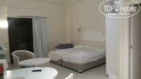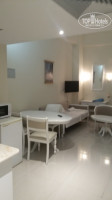 Номер студия в соседнем корпусе APARTAMENTS. Все работает, мебель как будто новая. Даже не обнаружила следов или вмятин на идеально белом столе))). Потолки в нашем корпусе очень высокие метра 4!!! В номере есть посуда на три человека. Кастрюлька, чайник, сковорода, тарелки глубокие и мелкие, столовые приборы и ножи, штопор, открывашка, чайный набор, графин пластиковый и еще что то по мелочи.
