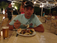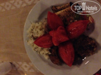 Еды было достаточно,без изысков конечно!голодными не остались,тем более я тогда худела и ела мало.На завтрак ходили в общий ресторан,а обедать было ближе в ресторане возле пляжа.Там всегда было несколько видов гарнира и пару мясных блюд на выбор+ овощи,зелень)фруктов было мало-финики в основном,еще апельсины и яблоки.