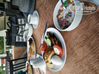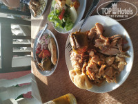 Питание- очень разнообразное! Но зная наш народ, будете готовы к тому, что у соседа будет лежать 4 Огромных куска торта, 10 пироженок и ещё что-то, а вам ничего не достанется, уж такие наши отдыхающие жадные и любят халяву 🙃. Из гарниров- рис, картофель (пюре, кусочками,фри), макароны, спагетти, булгур, баклажаны, просто овощи на пару. Мясо, курица, индейка, местные котлеты, колбаски- повторю, очень разнообразно. Каждый день свежие овощи, зелень, всевозможные салаты. Очень жаль, что фруктов было мало- но пока ещё был не сезон)На завтрак готовили яичницу и омлет, но можно было йогурт и хлопья различные. Очень вкусная выпечка. Смело можно сказать- голодными не останетесь! 🙂 При условии, что помимо завтрака, обеда и ужина- вы можете подкрепиться на пляже до обеда и после пекут вкуснейшие лепешки на территории отеля.