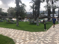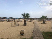 Территория у отеля большая, по тунисскким меркам, много зелени, три бассейна, огромный пляж. Ощущения муравейника, как это бывает в некоторых отелях Турции нет, хоть маленьким отель не назовешь. Один бассейн совмещён со спа, второй с глубиной от 5 см. до 160 см. Также есть «лягущатник» для малышей. У бассейна и на пляже всегда много свободных лежаков, без места не останетесь. В наличии тренажерный зал, но он плохой, тренажеров мало, беговая дорожка не работает, велотренажер – это просто доисторический век. Есть волейбольная и футбольная (песок) площадки, стол для настольного тенниса. При нас на пляже стали устанавливать дополнительную линию зонтиков, ещё ближе к морю. На пляже и у бассейнов есть столы и стулья под зонтиками, правда их ограниченное количество. В общем территория понравилась. Сам отель старый, но вид приличный, имеет удачную планировку, несколько входов и выходов, просторный лобби, два бара, у бассейна и на пляже, барбекю ресторан на пляже, снэк бар. На -1 этаже магазинчик, там получают полотенца, за депозит 20 динар. Полотенца можно менять бесплатно в понедельник, четверг и субботу.