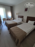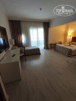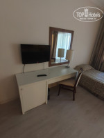 В номерах сделан косметический ремонт. Сейф бесплатно. Мини бар пополняется только при заезде безалкогольными напитками. Номера в главном здании есть с балконами и без, а цена одна. Также есть бунгало, номера фэмили и сьют с доп. платой 25 у.е./чутки.