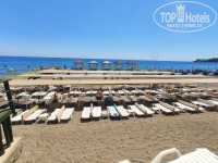 На Пляже Шезлонги, зонтики и полотенца бесплатно. Есть бар.