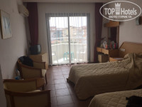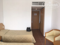 3. Номерной фонд на 4 этаже старый (на 5 вроде сделали ремонт). В номере: 2 односпальные кровати, шкаф, тумбочки, маленький древний телевизор, ванна / туалет с уставшей "сантехникой" и кондиционером, покрытие пола - плитка, стены - белая штукатурка. Вид с балкона на море, горы, мечеть (с 4 утра горланит).