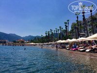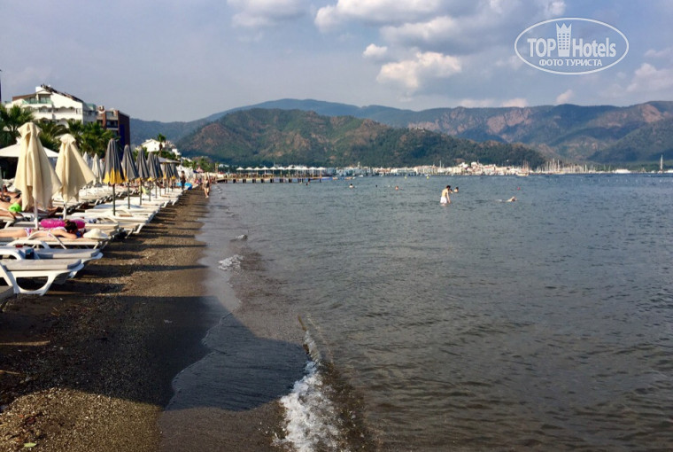 Пляж от отеля грязный, без душа, а туалет он же и раздевалка, находится в баре Faros. Море в Мармарисе грязное, т.о. мы были на нем раз, а потом ездили на автобусе в п.Ичмилер, вот там рай. Покупаешь по бутылки пива за 25 лир (50 итого) и лежи сколько влезет. Там пляжи и лежаки чистые, есть душ, море прозрачное и голубого цвета.