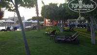 На ресепшен работают ребята из разных стран, поэтому проблем с общением и заселением у нас не возникло. Немного напрягло то, что не успели мы зайти в номер, как с ресепшн позвонили и довольно грубо попросили оплатить остальную сумму брони. Мы живем в Германии и у нас принято платить при выезде ,но правила этого отеля такие. Почему нельзя было это сделать сразу при регистрации-не понятно. Номер наш угловой находился на 1 этаже, с двумя большими светлыми комнатами, огромными балконами и видом на море. На столе нас ждал комплимен от отеля: бутылка шампанского и фрукты .К сожалению, сам номер требует капитального ремонта: видавший виды ламинат и не работающая проводка говорят о том, что отель уже поработал на славу. В защиту отеля и персонала могу сказать, что очень многое зависит от туристов. Такое потребительское и наплевательское отношение к чужому имуществу я не понимаю. Территория очень ухоженная, номера убираются, персонал работает на 100%, все очень вежливые и приветливые. Очень порадовал местный СПА центр, мы с мужем были на массаже и остались довольны. Девочки очень профессиональны.Вам предложат все виды массажа и ухода за телом. Рядышком располагается парикмахерская, где можно сделать отличный маникюр,педикюр или привести в порядок голову. В Германии такого мастера днем с огнём не сыщешь!