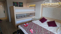 Находились в отеле со 2 по 9 июня. Покупали путёвку у Библио глобус как ual, на месте оказалось, что и до al не дотягивает. Я 11 раз в Турции, есть с чем сравнить. Ехали до отеля 2,5 часа, наш был третий. Заселили сразу, т.к. приехали в 16. Стандартный номер 1215 в основном здании у лифта. Номер bunk bed очень тесный, 2-х ярусная кровать стоит практически посреди номера, скрадывая тем самым полезную площадь, в общем не по уму. На балконе ласточки свили гнездо, перья, пыль и грязь свободно перемещались в номер, под балконами птичий помет и сами дохлые птички, неприятный запах. За неделю, что мы там были никто даже и не думал это убрать. В общем та еще "прелесть". Звукоизоляции как таковой нет, в санузле особенно, дверь в номер можно сказать отсутствует (7 ночей беспокойного сна). От лифта постоянный шум, так там ещё и грязная зловонная урна стоит, вечно утыканная стаканами. Сейф в номере платный, да к тому же не кодовый, а с картой, её нужно таскать с собой. Ключ от номера один, первый раз такое встречаю. Уборка в номере средняя, белье, полотенца меняли. Только после очередной, не нашли куколку Лол, 10$- мелочь, а неприятно. Лифты (2 на корпус) это отдельная песня, их можно ждать вечно, постоянные очереди, так что нам ещё повезло, 2-й этаж, пользовались исключительно лестницей. Заметили, что лестницу убирают раз в 3 дня и то 3 пролета. Про питание, что не понравилось: на завтрак йогурты, сыры, "сливочное" масло- низкого качества, с кислым запахом. Омлет пакетированный, за оладьями и пончиками очередь, и то ограничивают 2 шт в руки. Отдыхающие возмущались. Мы завтракали в 9.30, так в это время часто даже булочки сложно было застать. Нет нормального кофе нигде, ни в аппаратах, ни в турках в баре. Обедали в баре на пляже, там все нормально, мясо, рыба, салаты, гарниры, фрукты, десерты. Мороженое с 13-16. На ужин вроде бы разнообразно, но только к открытию, потом не пополняют, в 20.30 начинают сворачивать, опять же очереди от входа, свободный стол не всегда найдёшь, персонала не хватает, с наплывом не справляются, хотя видно, что выкладываются по полной, официантов нет. Из фруктов были 2 вида яблок, груши, апельсины, грейпфруты,абрикосы и персики. 8 июня появились арбузы. Про алкоголь: только местного производства, из того что пробовали, вино-пить не будешь, шампанское- безалкогольный сидр, бейлис-не плохой. Коктейли не пробовала, сок пакетированный в баре только томатный, в мини баре по составу что-то страшное, в аппаратах юппи. Да и молочного коктейля для детей тоже нет, молоко взбивают только для алкогольных. Бутилированная вода в холодильниках по всей территории отеля и на пляже. Про пляж: крупный песок, лежаков в сезон явно не хватает. Море чистое, заход галька и резко глубоко. На пляже есть небольшая д.площадка под навесом, площадка для пляжного волейбола ( раз в неделю там устраивают пенную вечеринку).Туалеты чистыми не назовёшь, убирают нечасто. Территория: много зелени, цветов, по площади средних размеров, 3 бассейна, плюс лягушатник с горками для малышни. По дороге на пляж мост через речку, вот там -то нам нравилось наблюдать за живностью, рыбки, утки, черепахи, голубые крабы в озерке -дети в восторге. Сыну понравились горки, 4-ре часа в день проводил на них. Ватрушек не много, но дети как-то приспособились их отлавливать.Хотела бы отметить работу спасателей на горках, следят хорошо, даже вытаскивают нет