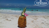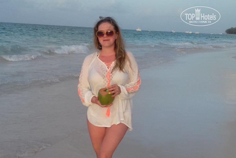Теперь главный плюс - океан! Пляж замечательный, песок и правда не нагревается даже днем, комфортно ходить без обуви. Лежаки отличные. Если стоять лицом к океану, то правая сторона пляжа - более активная, рядом бар, анимация. Слева - более тихо и спокойно, есть палатка (правда палатка белая, там можно брать пиво и коктейли, не бегать до бара). Вода теплая, чистая... но перед отъездом, 2 дня, были водоросли. Их убирали, но только справой стороны.