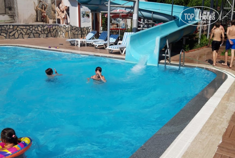 Номер: В номере есть все необходимое, телек, фен, холодильник,сейф. Хорошая мебель, видно что не так давно был ремонт, в нашем номере был большой угловой балкон. В номере было тихо и небыло посторонних шумов. Питание: Свинину не ждите, вы в гостях у мусульман. Выбор еды большой, кол-во не ограниченно. На ужин при гостях готовят горячее ( рыба разная, курица на вертеле и т.д) Пляж: Находится 5-7 мин. от отеля, пляж крупная галька, море чистое, там же находится свой бар, где можно перекусить ( гамбургер, лепешки + б/а напитки. Шезлонги с матрасами бесплатно, ( на сайте читали что платно).Анимация: Проводят девушка и мужчина. Утром: зарядка, акваэробика, дартс. Вечером: рисование с детьми песком, детская дискотека с аниматором, после конкурсы для взрослых. Если есть желающие в 23:00 аниматоры предлогают прогулку по Алании, после дискотека. Проходит это с 23:00- 02:30, увозят и привозят к отелю, (но эта услуга платная). Около отеля есть парк, рынок, мечеть. Совет: Меняйте доллары на лиры, выходит на много дешевле, т.к везде цену округляют, будете переплачивать за все. Из отдыхающих много мамочек с детьми, на наш отпуск шумных и буйных компаний не было. Минус отеля: УБОРКА номера, замена полотенец. P.S Если вы не превередливые и не хотите переплачивать, вам сюда.