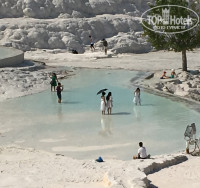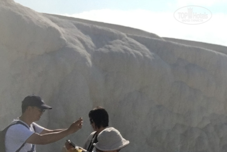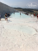 Наконец-то я съездила в Памукалле, так долго откладывала, пугали тяжелой дорогой. Оказалось, «не так страшен черт...» С отеля забрали в час ночи, автобус полупустой, человек 20, из них 6-7 детей от 2 до 13. Детки не капризничали, спали. В семь утра нас разбудили с предложением позавтракать, покормили, потом заехали на винзавод, попробовали вино, желающие купить - купили и очень скоро мы были в Памукалле. Время было около 11 утра, экскурсия, потом 2,5 часа свободного времени. Бассейн Клеопатры посмотрела, но купаться не стала. Главная цель поездки посмотреть, потрогать чудо природы - Памукалле. Да, жарко, да, много народу (китайцев!), но это был такой восторг от невероятной красоты, фотографии не передают этого ощущения сказочности, волшебства. Спустилась с горы почти до последних травертин, здесь нет такой толпы. При входе заставляют разуваться, но я надела белые резиновые тапочки и ходила в них, все таки достаточно скользко. На обратном пути пообедали, потом заехали на фабрику оникса и фабрику ковров. Все в хорошем темпе, никто не задерживался и к ужину была в отеле. Обратная дорога, конечно, более утомительна, но хороший гид и шикарные виды за окном все компенсировали. Ездила через «Анекс», 49 $ поездка. На улице предлагали и за 25, но, конечно, питание туда входить не будет, и за экскурсию, скорее всего, придется доплачивать.