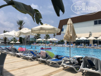 Прилетели ночью, в Алании были уже в 5 утра. Нам дали понять, что номеров нет, даже за деньги. Ок, пошли бродить по отелю. Первое, что я хотела сделать, так это помыть его. Вот взять и почистить стекла, лифты, общие туалеты. Отель новый, красивый, но не ухоженный, как будто всем на него по фиг. Единственное, что моют, забегая вперёд, скажу -бассейн. Он хороший, чистый, относительно большой. Территория вокруг отеля, небольшая, зелёная.
