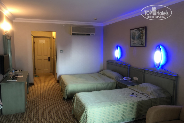 Приехали мы в 2 часа, заселили быстро, дали номер на 2 этаже, вид с балкона был на соседний отель. Ехать от аэропорта Анталии до отеля примерно 2 часа (включая 15 -ти минутную остановку)