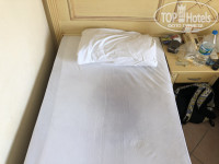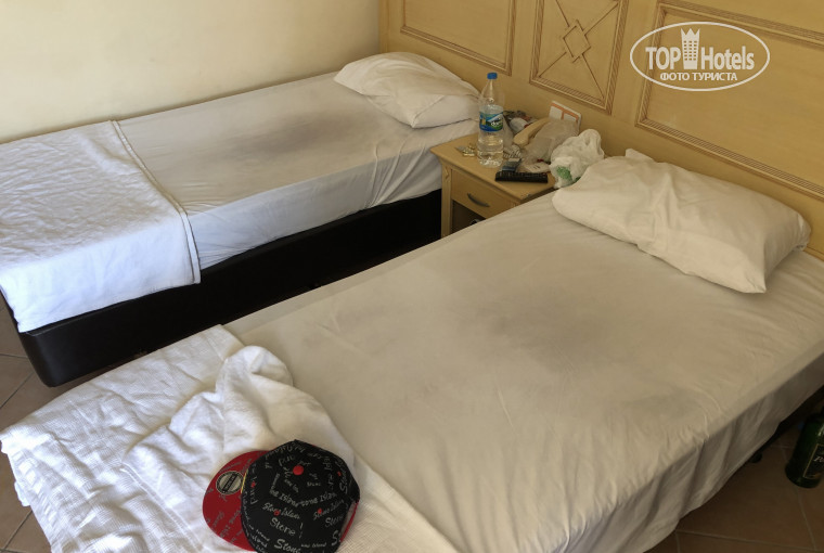 ( Гранд Базар, фонтан и памятник Аттатюрку) так себе, но терпимо. Пешком идти минут 20-30. Но мимо отеля проезжает много маршруток (оранжевая и с разноцветными полосками), на них за 4 лиры можно доехать до центра за 5-10 минут. Рядом с отелем 2 супермаркета Мигрос, много магазинов разных, кафе и ресторанов. При отеле есть Хамам, 10-15 долларов, как сторгуетесь, такой же как везде, только ехать никуда не надо. Если вы требовательный турист-этот отель не для вас. Я видел разные тройки, эта одна из худших. Я бы дал не больше 2*. Отель старенький, все потрепанное, мебель, стены, сантехника. Где-то проводок торчит, где-то шторы рваные, на балконе деревянные стулья с отломанной спинкой (так было у нас). Но все работало, перебоев с горячей водой не было, убирались каждый день. Качество уборки так себе, постельное белье затасканное, на фото видно. В номере есть тв с 2 русскими каналами, 1 и Россия24. Холодильник. который практичкески не охлаждает. Кондиционер, который еле-еле пашет и на 18 градусах выдает воздух 23-24, плохой короче кондиционер. Оценка номера на двоечку. Бассейн для такого отеля по размерам хороший, шезлонгов человек на 20, есть горка маленькая. Бар наливает вино белое/красное (не разбавленное), пиво (2 оборота), раке (не разбавленная, потому что меняет цвет от смешивания с водой), водка и джин разбавленные в половину!!!! (вода водой, запивки не надо). Все подается в стеклянных стаканах. Персонал приветливый, не весь, но терпимо. Никто не говорит на русском языке, приметивные привет-пока, водка, джин, как дела. Объясниться на русском не получится, но говорят на английском. Теперь про главный минус отеля- про еду. Шведский стол не тянет больше отеля 2*.