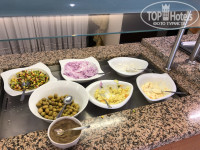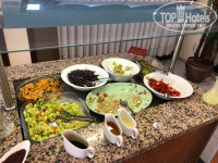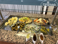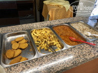 Завтрак-иногда стоит повар и жарит омлет или яичницу, иногда уже на раздаче это все готовое и намешанное в подносе. Отварные яйца, какие-нибудь сырные палочки или что-то типа, сыр, соевая колбаса, масло, пару видов джема, хлопья , молоко, пару йогуртов, огурцы и помидоры. Чай, кофе, фруктов нет.