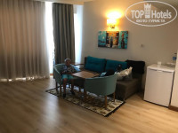 10.06.2019 г. Летели с Египта через Турцию. Самолет задержали на сутки и Pegas Touristik снял нам номер в этом отеле. С аэропорта ехать близко минут 20. На ресепшене встретили радушно, предоставили номера, одели браслеты и пошли обедать. Еда очень разнообразная и вкусная.Территория отеля нам показалось не большой, но ухоженная. Отель расположен на оживленной улице, где очень много магазинов, а еще рядом с отелем есть банкомат Denizbank, где можно снять лиры с карты сбербанка без комиссии. Так же побывали на пляже, идти не далеко минут 7 не быстром шагом. На пляже много лежаков, волейбол, есть бар, где можно выпить и поесть не ходя в сам отель. Номера в отеле квартирного типа, это классно у нас был 2-х комнатный номер.