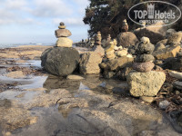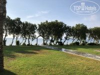 Территория отеля небольшая, ухоженная. Можно пройтись по дорожкам среди цветущих кустарников, в светлое время по берегу моря.