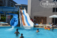 Территория отеля не большая, но очень уютная атмосфера, 4 бассейна (2 детских +2 взрослых по глубине если не ошибаюсь 1,40м ) , 2 водные горки, бар на территории около бассейна, амфитеатр, анимация на территории отеля 5+, каждый день команда аниматоров не дают скучать отдыхающим на протяжении всего дня, и днем и ночью развлекают гостей, конкурсы, концерты, пенные вечеринки, для детей очень много развлечений.