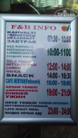 Еда,питание без изысков. На обед и ужин 2вида рыбы (скумбрия, сибас), говядина и баранина,индюшатина. 1раз была смесь из морепродуктов (жаровня).На завтрак каша 2вида (несьедобные), и всевозможные блюда из яйца (омлеты, яичница), блиды и оладьи. На обед -супы-пюре 2-х видов. Супы муж и дети ели,вроде не особо вкусные,но сьедобные) Дети ели макароны,чуть картошки фри и рис. Про мясо и рыбу уже написала. Фрукты были -клубника, черешня, арбузы,дыни ( на вид зеленоватые, но сладкие), персики (временами зрелые и сладкие) и конечно дубовые груши, сливы. Сладости -так себе, пахлава нескольких видов (орехи в ней чуть чувствуются), тортики типа нашей "картошка".