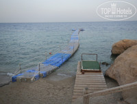 Понтон будет подлиннее заявленных 50м, но не более 80м. Вполне хороший (на него раньше жаловались), но одного кажется маловато для отеля. Иногда явно людей избыток вокруг него. Опять же видимо экономия (на дополнительный понтон и спасателя). Впрочем, у большинства соседних отелей, которые имеют по более номеров, тоже по одному понтону.