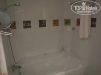 В санузле ванна, отдельный душ за стеклянной дверью, и т.д. Принадлежности, фен все на месте. Есть биде. Фото интерьера номера прилагаю. Единственное, на балконе за парапетом когда-то были цветы и проведен полив, а теперь пересохшая земля с окурками прежних постояльцев. Видимо финансы и уровень конкурентных цен не позволяют содержать цветочки на каждом балконе, но окурки то убрать можно. Конечно же, те кто оставил бычки (бескультурная публика) заслуживают в первую очередь нелестных слов.