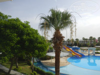 Территория отеля компактная, поэтому в принципе расположение номера большое значение не имеет. Мы взяли самый обычный номер с видом «на сад». Есть возможность поменять на месте за доплату на другую категорию, с видом на бассейн или на пляж, но мы не стали, нас вполне устроил наш номер. Нам достался номер 32 с видом на бассейн с аквапарком из трех горок, детским бассейном и детским клубом, баром, а также на прекрасные рассветы и море тоже вдали видно – можете оценить по снимкам. От моря вроде бы и самая удаленная группа номеров, но в силу компактности территории (в сравнении с другими близлежащими отелями Шарма)– для нас никаких неудобств – идти совсем недолго (5-10мин) и полезно.